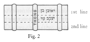 - Above the last line and across the back of the second line (from the bottom) of the text; and this, i.e., the name only of the father of the witness, would remain on the deed were the last line to be cut off. [(V. fig. 1, cf. Fischer loc. cit.)]. According to the description of the Yad Ramah, the signatures appear thus (v. fig. 2).