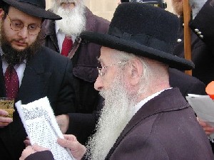 grandfather of the bride, Rabbi Hendel of Montreal, is reading the Ksubah