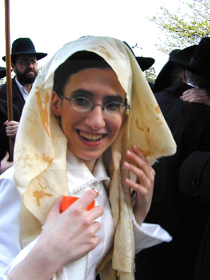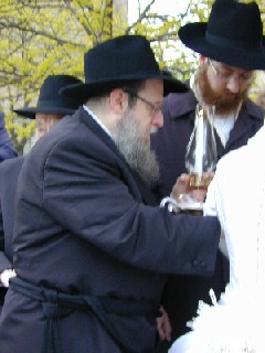 Rabbi Noson Gurary, father of the bride, leads his daughter in circling around the groom.