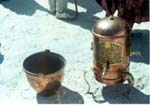 MISHNAH. … THE SEVENTH HAD THE FINE FLOUR, THE EIGHT THE GRIDDLE CAKES, THE NINTH THE WINE. THEY WENT AND PLACED THEM ON THE LOWER HALF OF THE ASCENT ON ITS WESTERN SIDE, AND SALTED THEM AND CAME DOWN AND WENT TO THE CHAMBER OF HEWN STONE TO RECITE THE SHEMA. — Babylonian Talmud, Tractate Tamid 31b After the slaughtering, blood sprinkling, and separation of limbs and organs, the priests leave the body parts on the side of the altar and retire to another chamber to recite the Shema, a Jewish prayer (see Soncino Talmud Glossary). Sprinkling the Blood of BirdsIn a sin-offering, the slaughter of birds and smearing their blood is prescribed thus: MISHNAH. HOW WAS THE SIN-OFFERING OF A BIRD SACRIFICED? HE PINCHED OFF ITS HEAD CLOSE BY ITS NECK, BUT DID NOT SEVER IT, AND HE SPRINKLED ITS BLOOD ON THE WALL OF THE ALTAR; THE RESIDUE OF THE BLOOD WAS DRAINED OUT ON THE BASE. ONLY THE BLOOD BELONGED TO THE ALTAR, WHILE THE WHOLE OF IT BELONGED TO THE PRIESTS. — Babylonian Talmud, Tractate Zebahim 64b Certain Fingers Used To Smear BloodThe following Gemara discusses some of the fine points: GEMARA. … How was the blood of the public and the private sin-offerings applied? He went up the ascent, turned to the surrounding balcony, and passed on to the south-east horn, where he dipped his right finger — i.e., the index finger of his right hand — into the blood in the bowl, and supported it with his thumb on this side and his little finger on the other, and applied it with a downward movement against the edge of the horn until all the blood on his finger was gone, and thus [he did] at every horn? — This is what he means: Its regulation is [that it be applied] at the edge; yet if he applies it within a cubit in either direction, we have no objection … — — Babylonian Talmud, Tractate Zebahim 53a Washing Blood from the HandsWhen a priest's hands become bloody, the need for washing may or may not be dependent upon whether the blood spurted on his hands before after he flayed, or before or after he sprinkled. The rabbis discuss the issue. (Ellipsis in second paragraph is present in original Soncino text.) GEMARA. … Rabin son of R. Adda said to Raba: Your disciple said in R. Amram's name: It was taught: If [the priest] was sprinkling, and [the blood of] the sprinkling spurted out of his hand, [and this happened] before he had sprinkled, it needs washing; after he had sprinkled, it does not need washing. Surely this is what he means: [If it happened] before he finished sprinkling, it needs washing; after he finished sprinkling, it does not need washing. — No: this is what he means: before the sprinkling had left his hand, it necessitates washing; after it had gone forth from his hand, it does not need washing. — Babylonian Talmud, Tractate Zebahim 93b Blood Drained Into BrookTractate Middoth of the Seder Kodashim provides a description of the Second Temple. Chapter III, Mishnah 2 provides us with this detail of the direction of the flow of blood, and bears witness to the quantity of blood that issues forth from Temple sacrifices: MISHNAH 2. AT THE SOUTH-WESTERN CORNER [OF THE FOUNDATION] THERE WERE TWO OPENINGS LIKE TWO FINE NOSTRILS THROUGH WHICH THE BLOOD WHICH WAS POURED ON THE WESTERN SIDE OF THE FOUNDATION AND THE SOUTHERN SIDE FLOWED DOWN TILL THE TWO STREAMS BECAME MINGLED IN THE CHANNEL, THROUGH WHICH THEY MADE THEIR WAY OUT TO THE BROOK OF KIDRON. — Babylonian Talmud, Tractate Middoth, Chapter III, Mishnah 2 Notice that, according to the above Mishnah, there was so much bloody run-off that two "nostrils" were built into the Temple and blood flowed through them and into a brook. Rabbi Dr. Epstein confirms the frequency of these sacrifices. There were obligatory sacrifices, and there were voluntary sacrifices. There were collective sacrifices brought in the name of the entire community: the early morning and afternoon sacrifices, and the additional sacrifices on Sabbaths, New Moons, Festivals, and the Day of Atonement; and there were besides individual sacrifices. Some sacrifices were honorific in character and were offered in worship or as an expression of homage to God; others were piacular and were brought in expiation of sin; others again were tributary and presented in recognition of God as bestower of the gifts of Nature. To the honorific belong the peace-offering (shelem, plur. shelamim), the thank-offering (todah), and the burnt-offering ('olah). The sin-offering (hattath) and guilt-offering (asham) belong to the piacular; and included in the tributary are the firstlings (bekoroth) and the cattle tithes (ma'aser behemah). — Rabbi Dr. Epstein (2) Wealth Displayed in Sacrificial ChamberFrom the Mishnah of Tamid 30a-30b, we learn that ninety-three (93) vessels of silver and gold are brought into the sacrifice chamber. These are the vessels in which the blood of the sacrifices is collected. This passage further describes the signs of great wealth on display. GEMARA. … There were thirteen tables in the Temple. There were eight of marble in the slaughter house on which they used to wash the inwards; two to the west of the ascent, one of marble and one of silver — on the marble one they used to put the limbs and on the silver one vessels of service, two in the Porch on the inner side by the door of the Sanctuary, one of silver and one of gold — on the silver one they used to place the Shewbread when it was first brought in, and on the gold one when it was taken out, because with holy things we always go a step higher and not a step lower; and one of gold in the inner place on which the Shewbread always rested. Now let us see. There must be no sign of poverty in the abode of wealth. (2) Why then was the table made of marble? It should have been made of silver or even gold! R. Hinnena answered in the name of R. Assi, and R. Assi in the name of R. Samuel b. R. Isaac: Because [the metal] would heat the flesh. — Babylonian Talmud, Tractate Tamid 31b Note these words in th